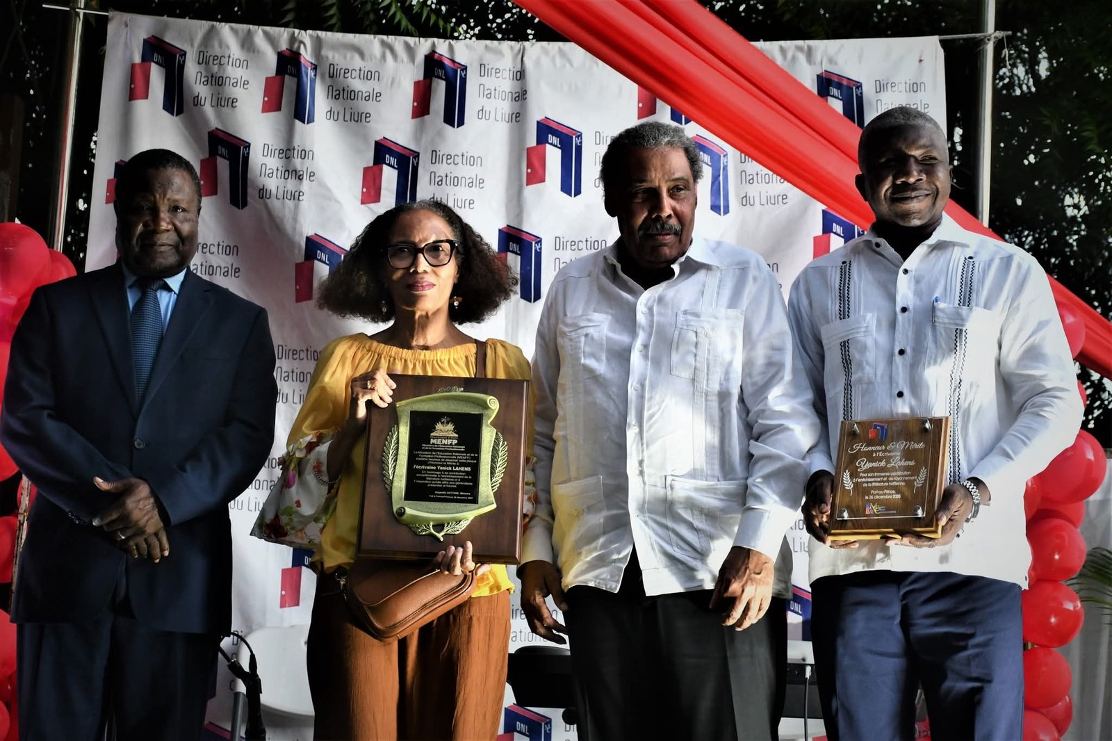 Au cours de la cérémonie, deux plaques d’honneur ont été remises à Yanick Lahens : l’une par le ministère de l’Éducation nationale, qui a insisté sur l’importance de la littérature dans l’enseignement, et l’autre par la Direction Nationale du Livre.